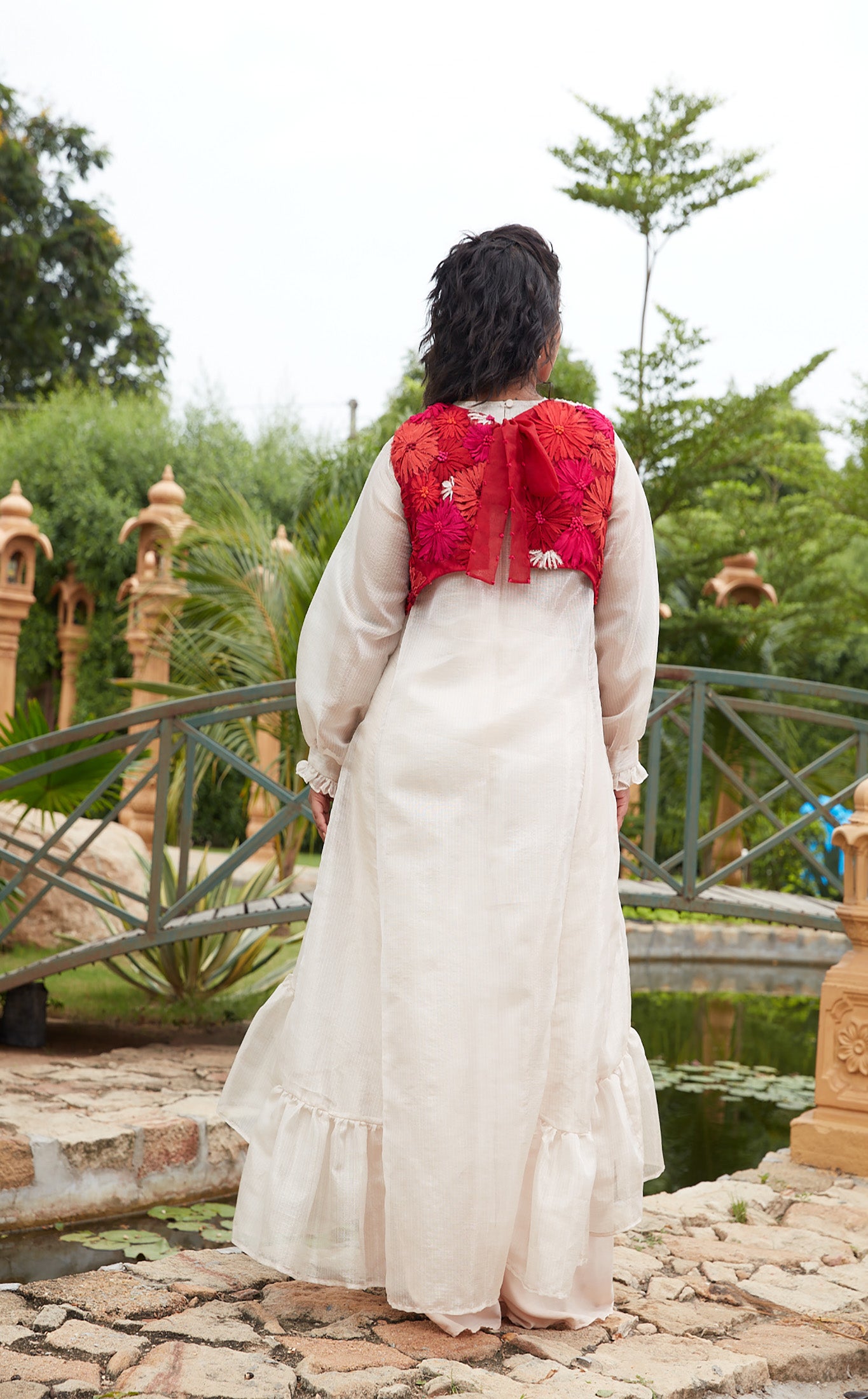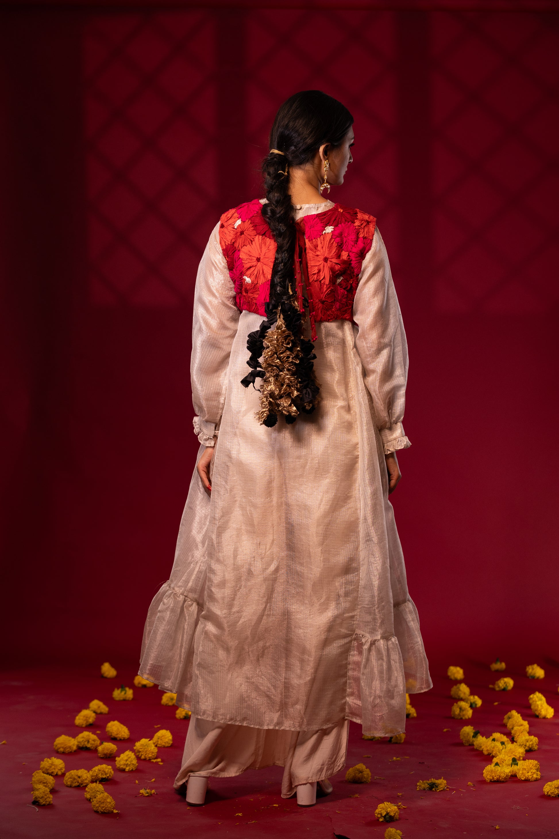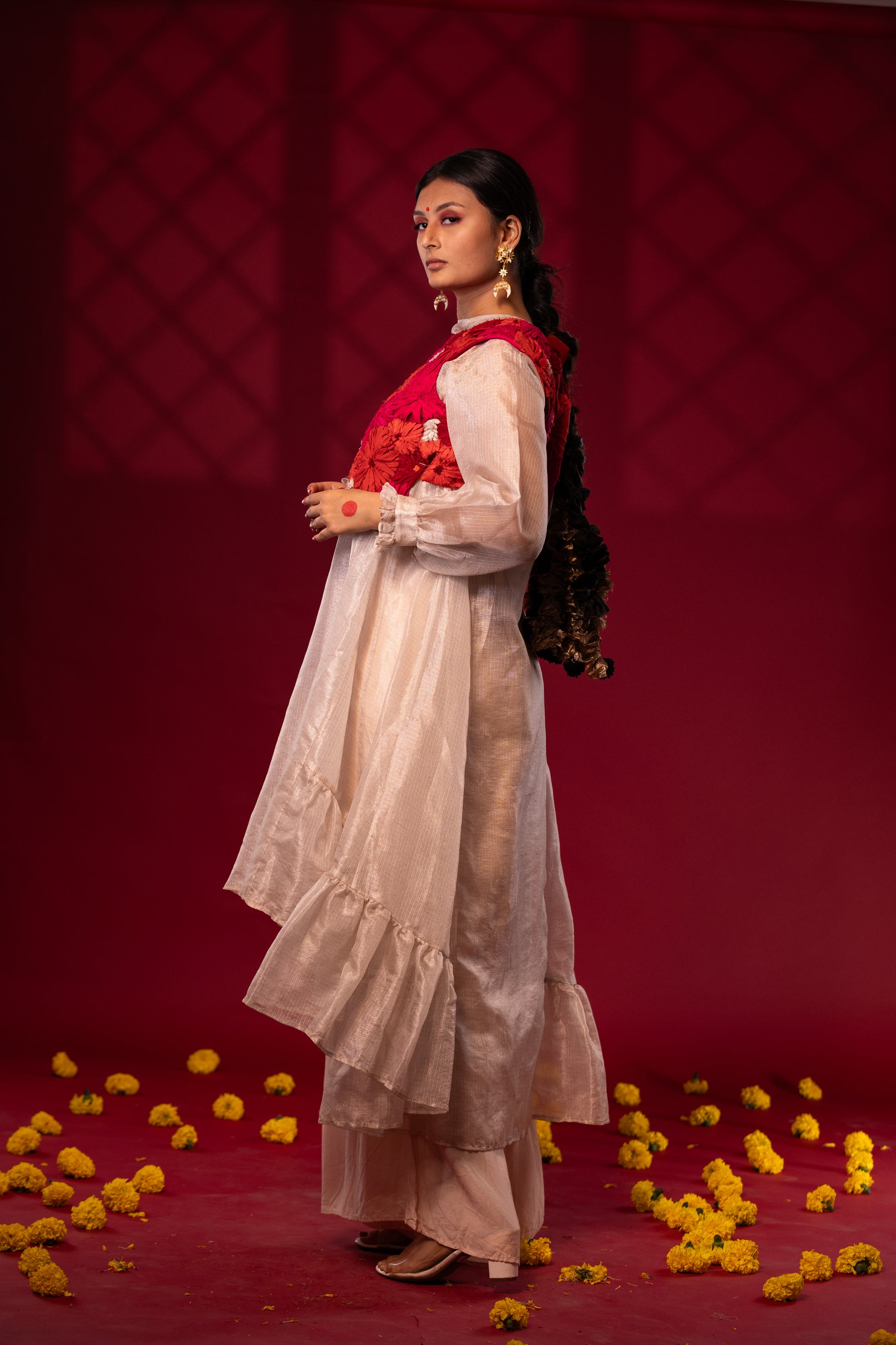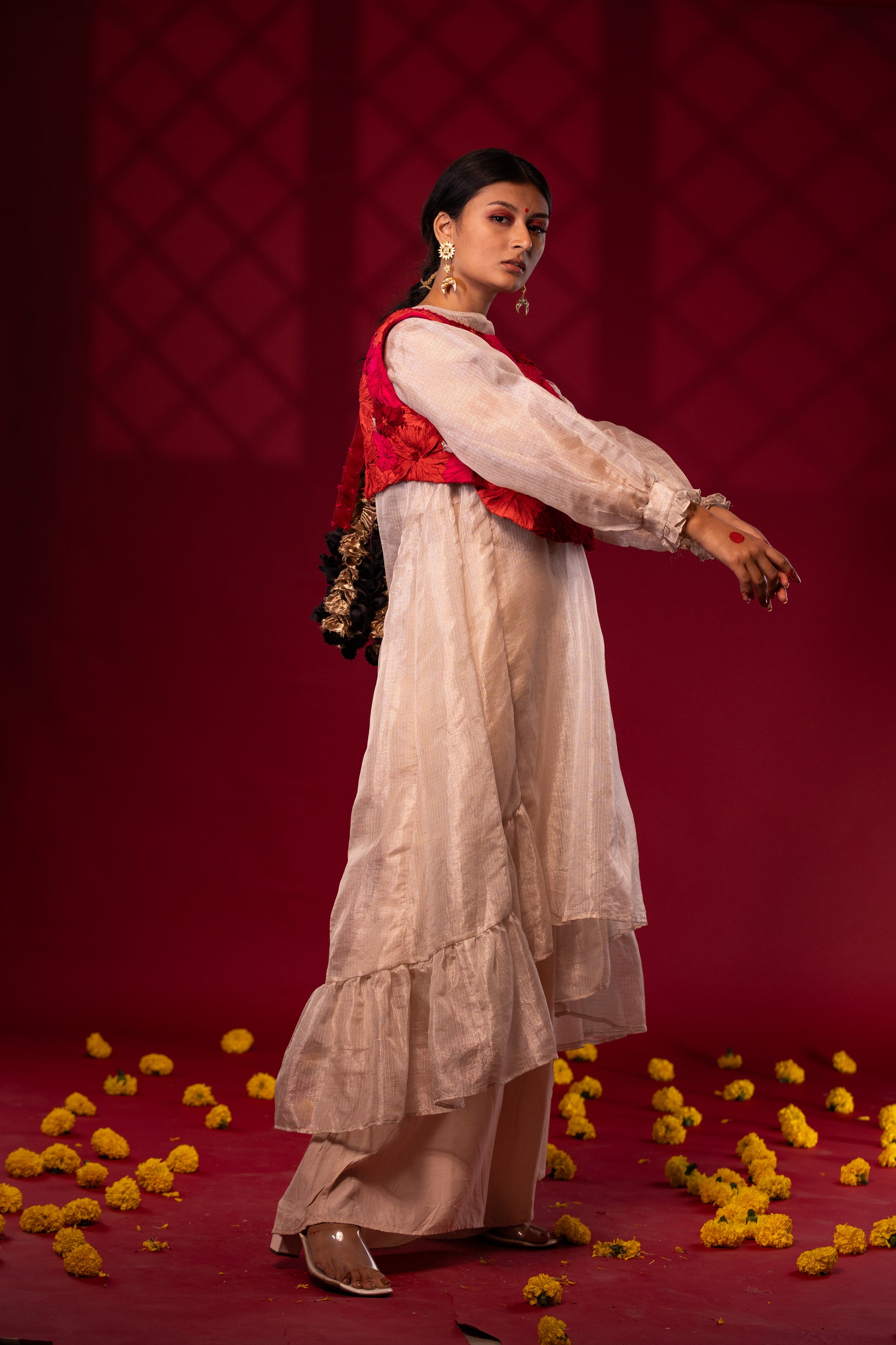 This expertly crafted collection embraces the fusion of cultures and helps you indulge in the harmony of two artistic epochs, where Renaissance elegance intertwines with the resplendent tapestry of Indian crafts. Each garment revels in intricate detail, some with the intrigue of night flowers on delicate silks and organza while others feature mesmerising metallic tissues painstakingly handwoven with precision.