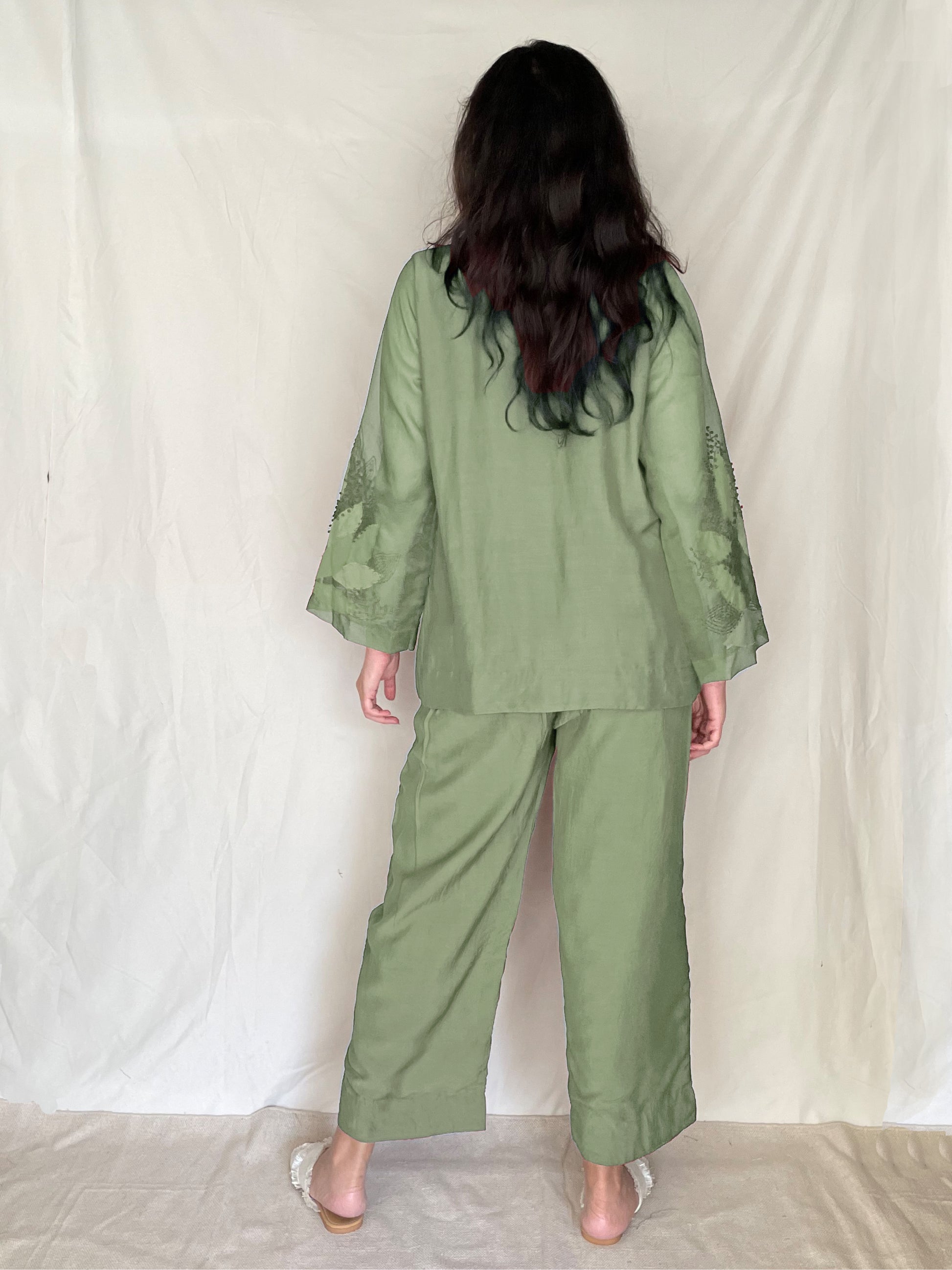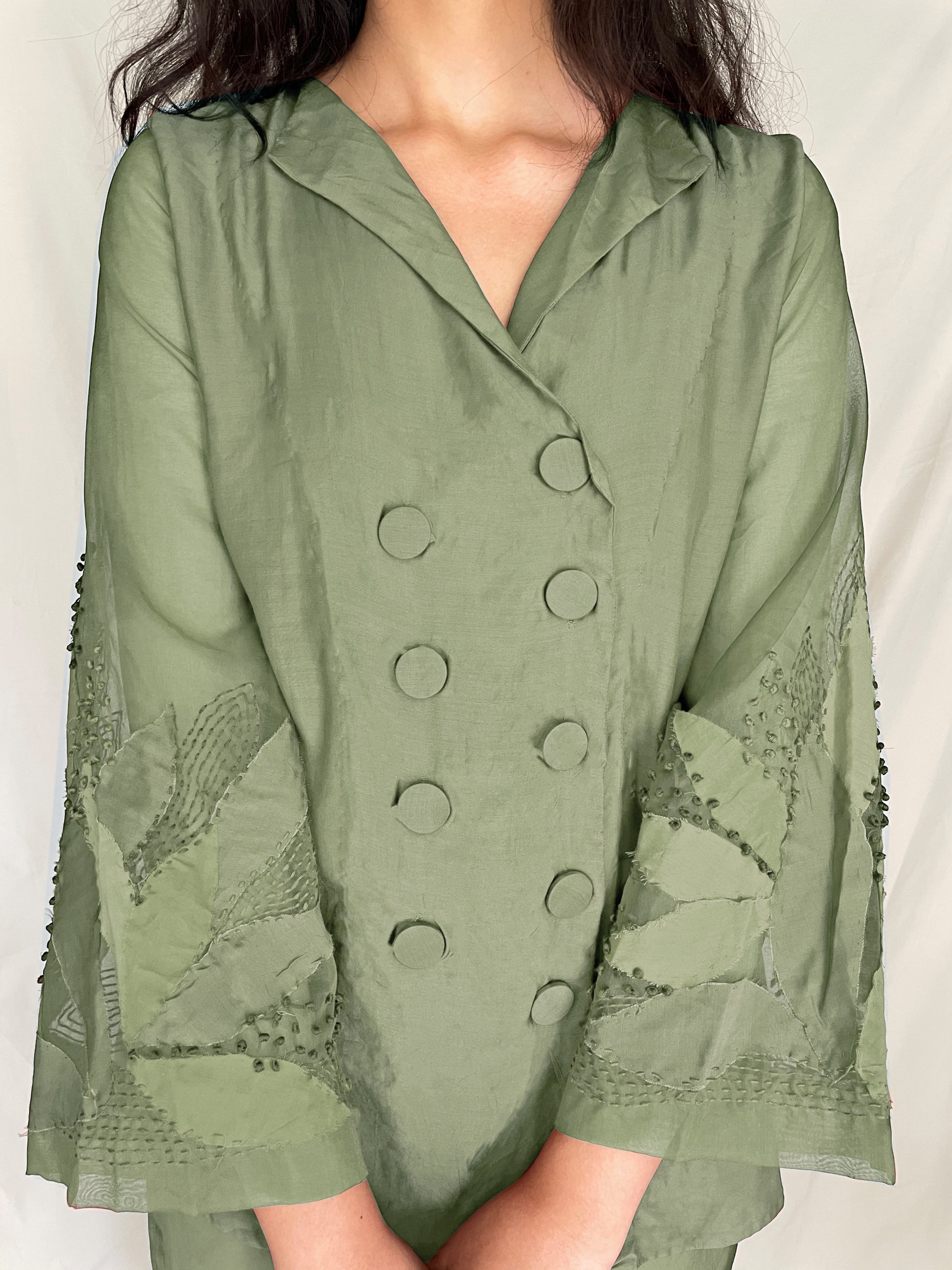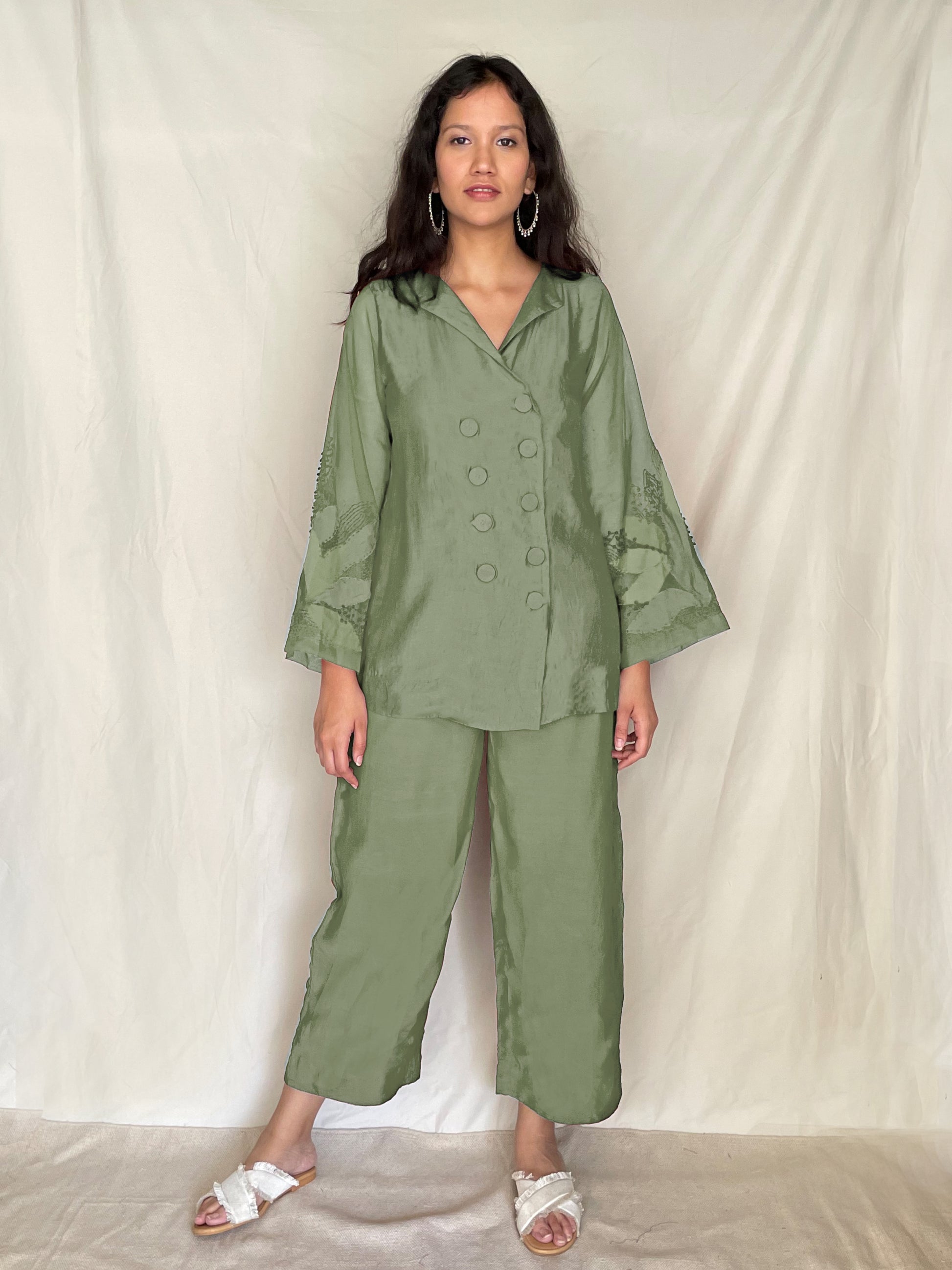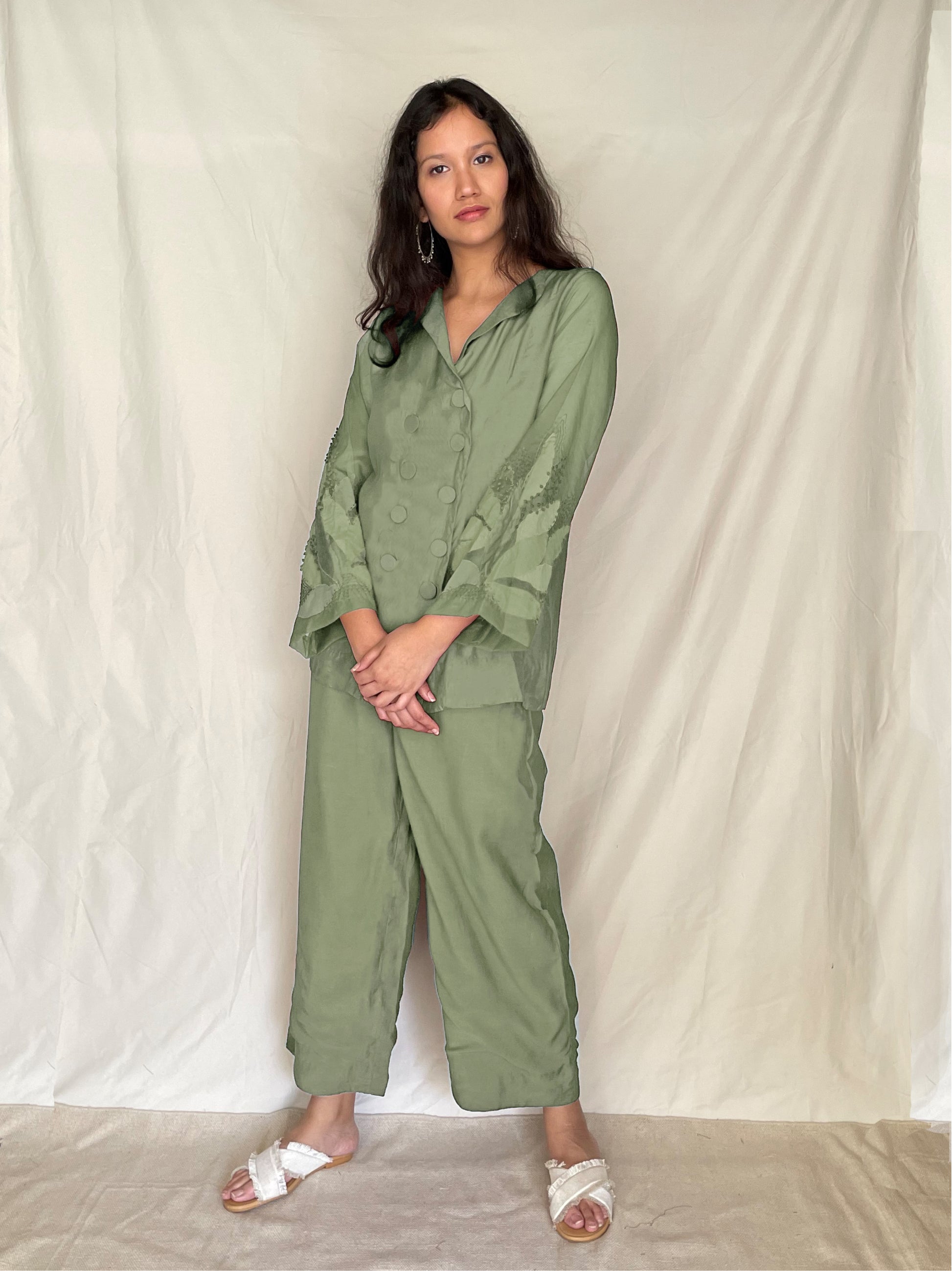 This collection is made of plant-based silk organza, vegan silk, slub chanderi, the beautiful chanderi tissue, and along with it, we have incorporated zari stripes and checks in our collection. The vibrant colours that fall in hues of white, lavender, maroon, reds, yellows and greens, bring out the intricate detailing that is adorned in the collection. The silhouettes are versatile, functional, and comfortable resulting in a playful collection of easy formal wear, with a tinge of minimal aesthetic and unique styles.