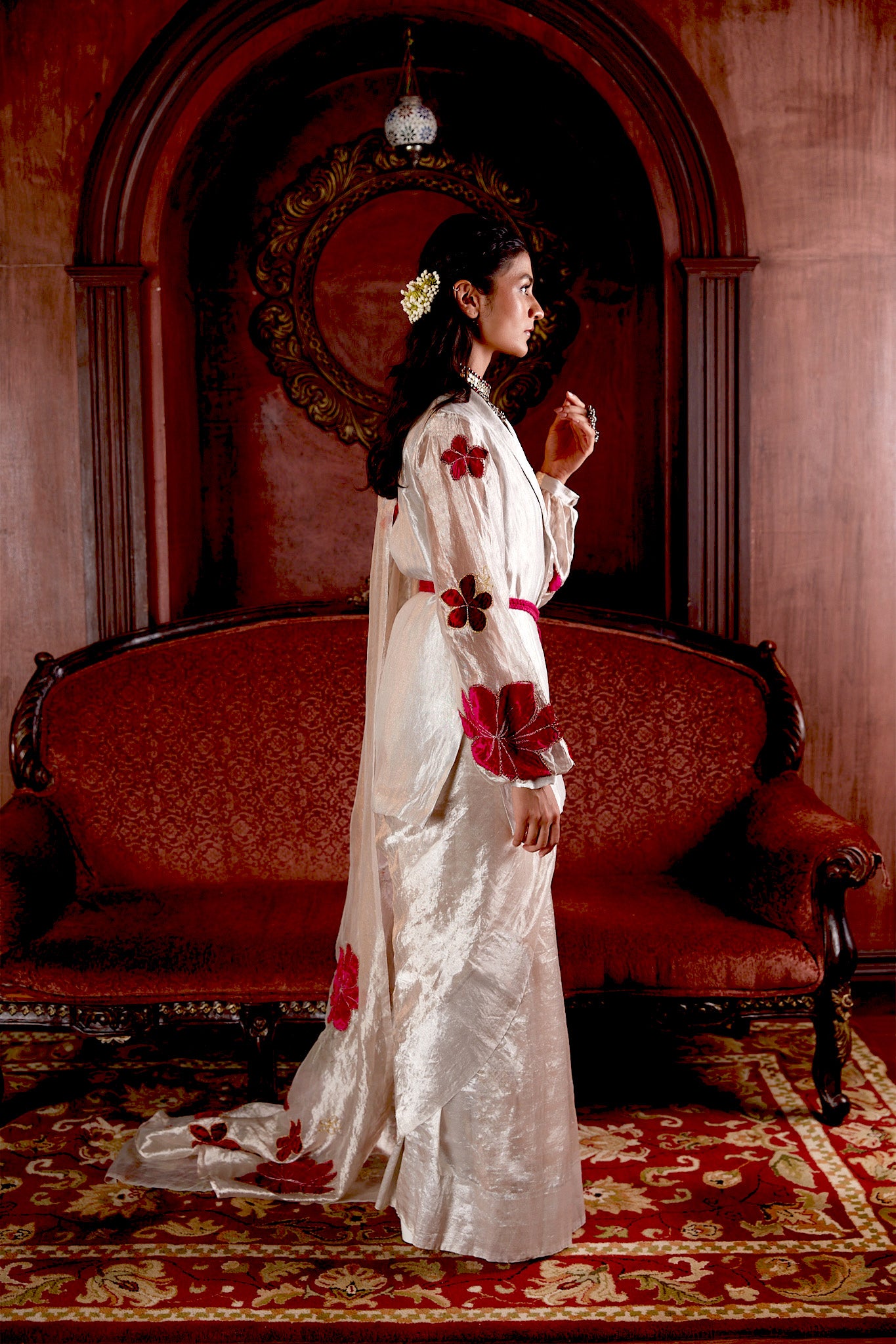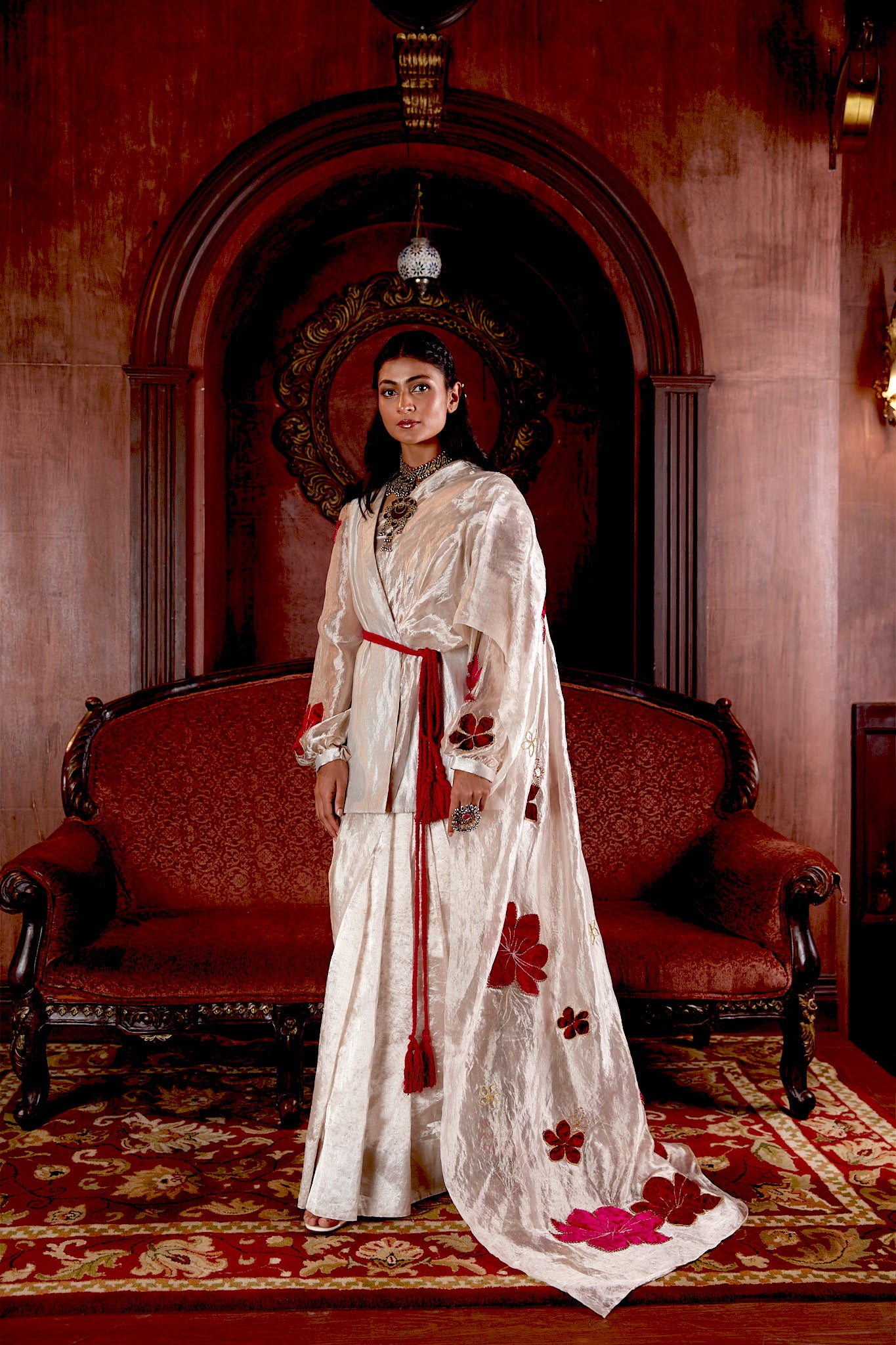 This expertly crafted collection embraces the fusion of cultures and helps you indulge in the harmony of two artistic epochs, where Renaissance elegance intertwines with the resplendent tapestry of Indian crafts. Each garment revels in intricate detail, some with the intrigue of night flowers on delicate silks and organza while others feature mesmerising metallic tissues painstakingly handwoven with precision.