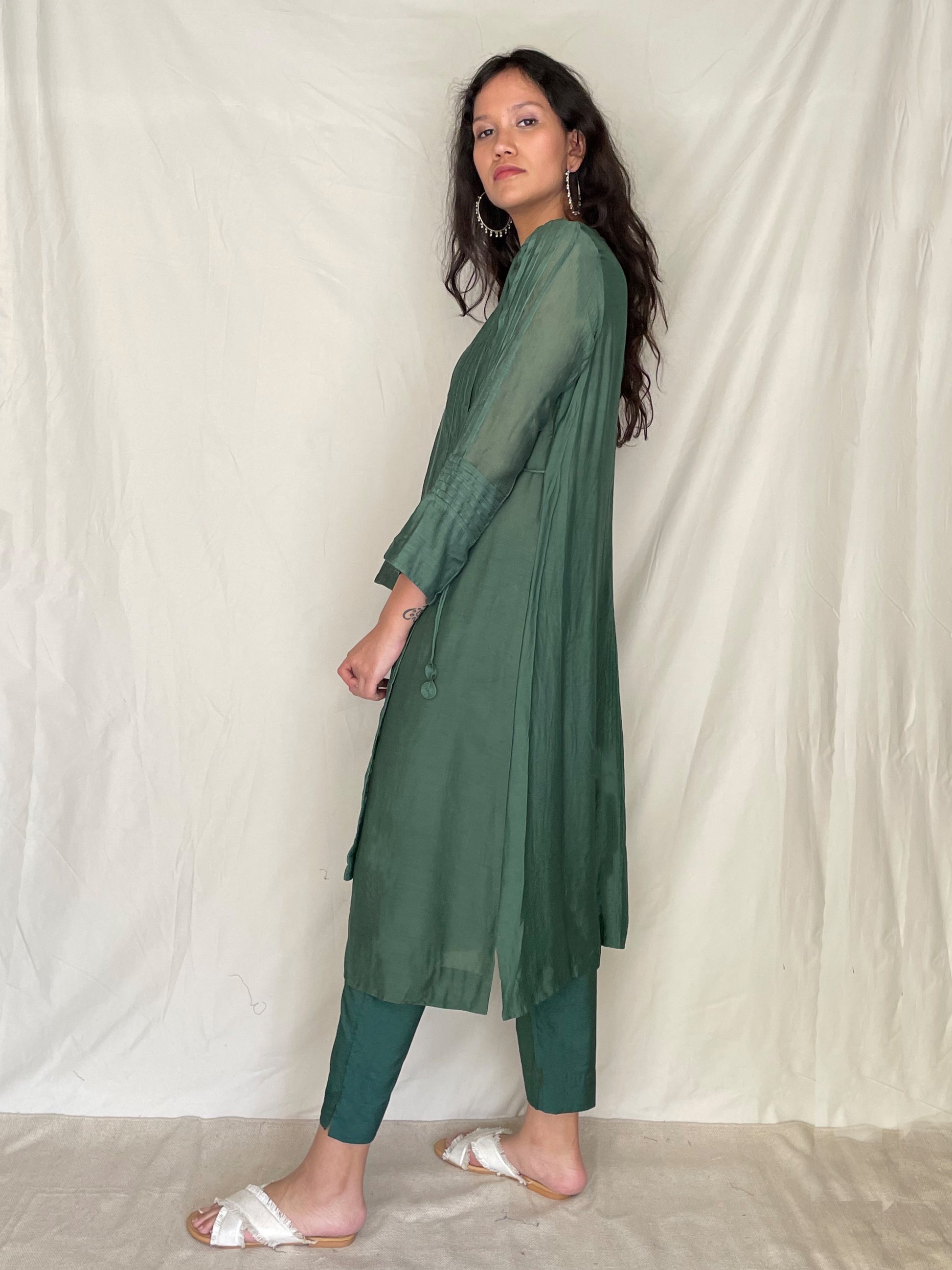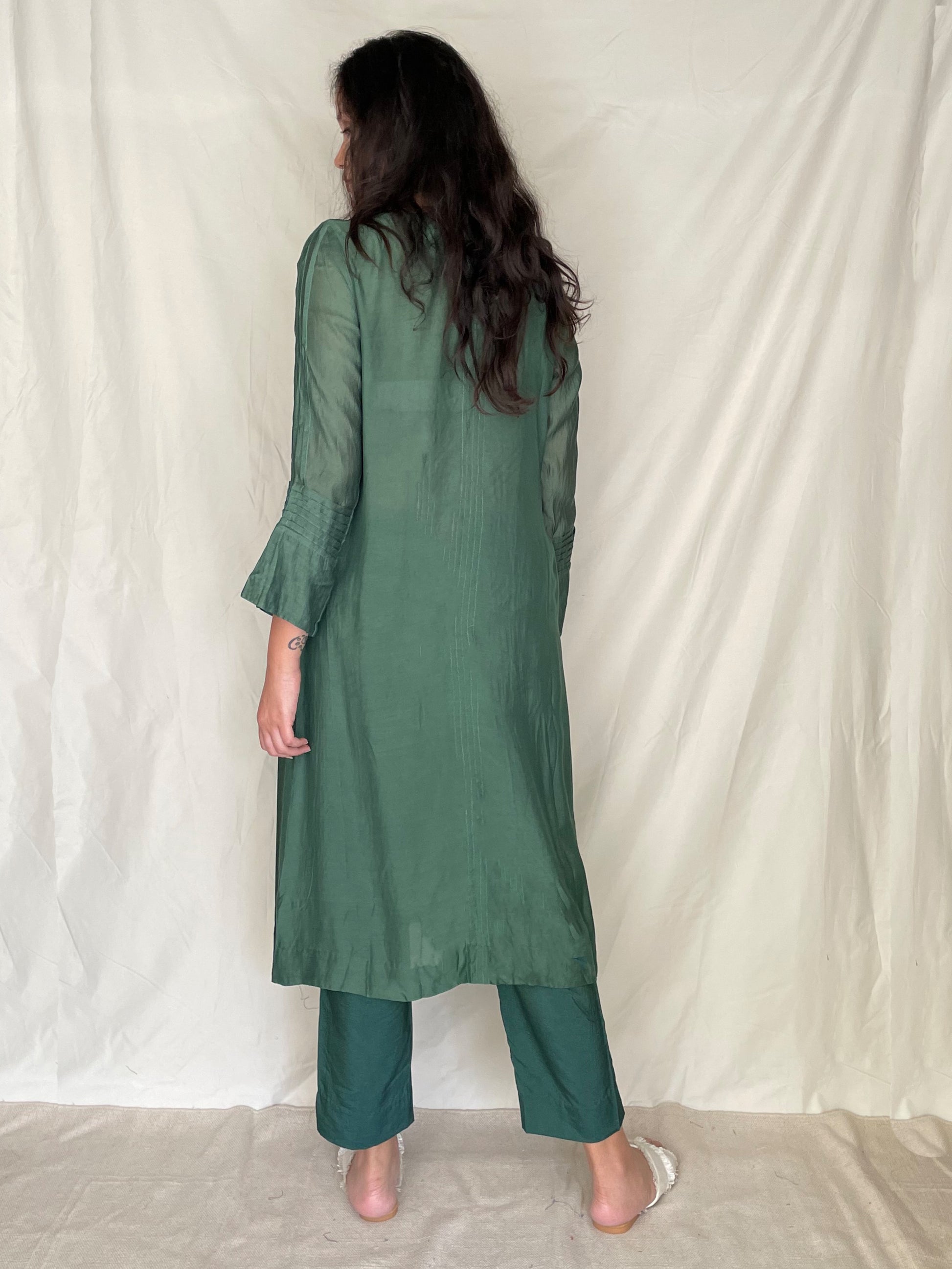 Please do not use any harsh chemical on clothes while washing or otherwise. (like strong perfume, starch or strong detergent.) All our garments are best washed separately in cold water.